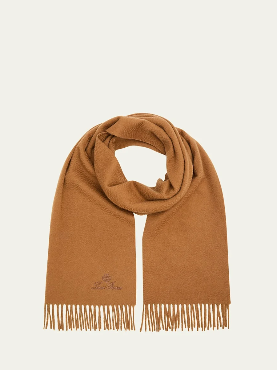 Loro Piana "Grande Unita" scarf crafted from extrafine cashmere Approx. 69"L x 17"W Features an exclusive Frisson finish to give the fabric an added sheen with a luminous color quality Fringe ends May be styled multiple ways Cashmere Hand wash or dry clean Made in Italy