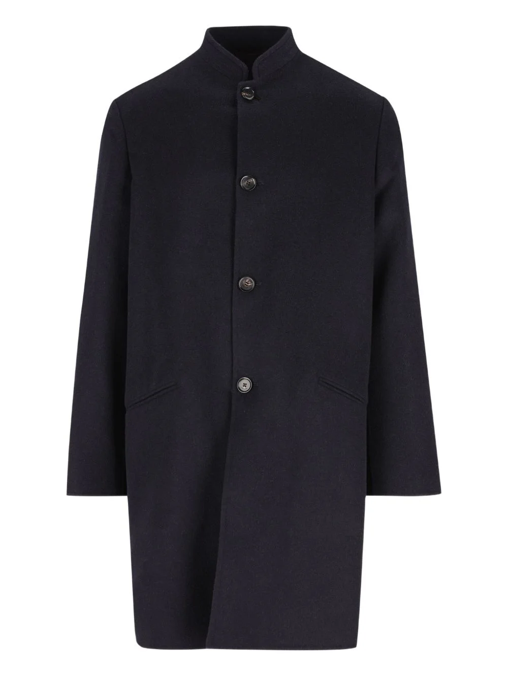 Mandarin-collar cashmere coat Highlights - Dark blue - Front button closure - Mandarin collar - Side jetted pockets - Straight hemline Made in Italy Composition Cashmere 100% Washing instructions Read Manufacturer Guidelines