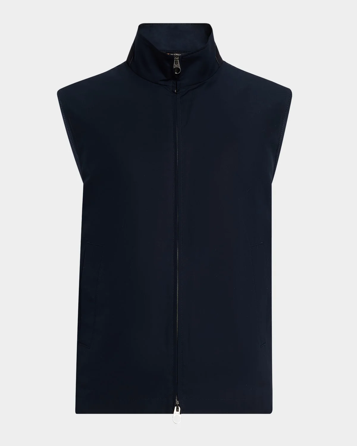 - Loro Piana "Landon" vest in lightweight cotton satin with suede undercollar - Stand collar - Two-way zip front - Side welt pockets - Sleeveless - Straight hem - Oversize fit - Cotton - Unlined - Dry clean - Trim: Leather - Made in Italy