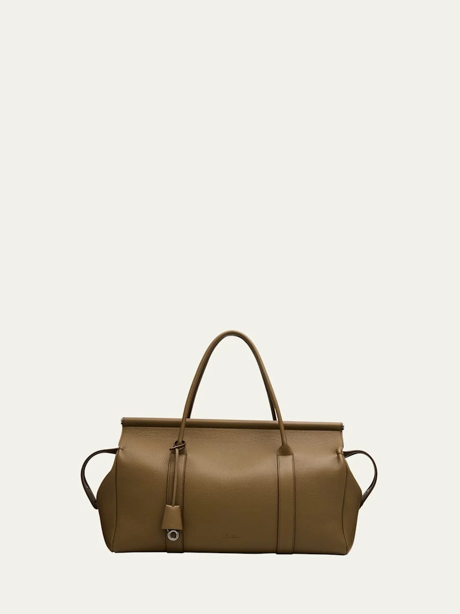 Loro Piana "Loom L42" weekender bag in calfskin leather Leather top handles Zip closure with LP padlock Stamped logo on the front Interior, one leather open pocket with stamped logo One removable inner zip pouch LP ring charm Ring-shaped protective feet Hardware with gunmetal finish Approx. 10.2"H x 16.5"W x 9.0"D Made in Italy Proposition 65 warning for California residents Online Inquiries: BGS21_NCDBK| Store Inquiries: #4861156