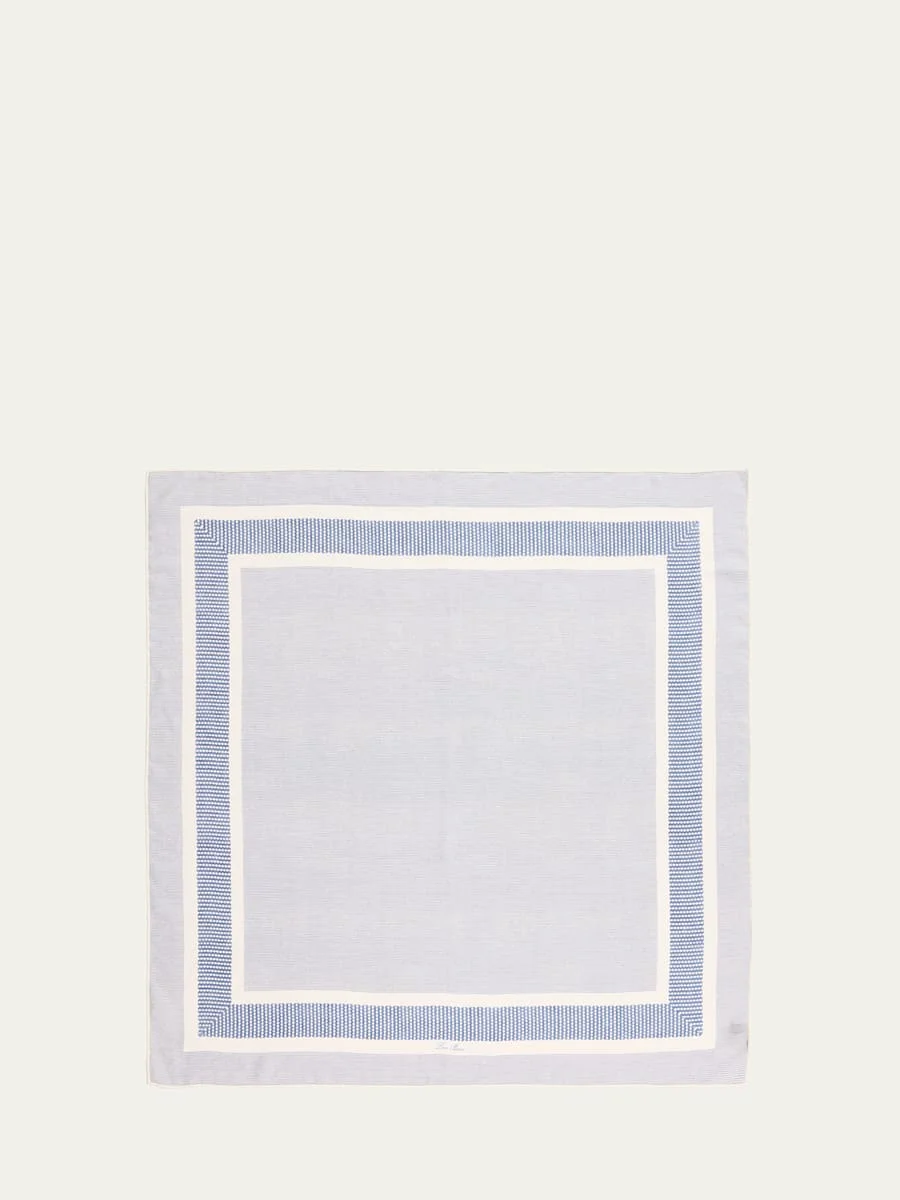 Loro Piana "Marea" foulard in lightweight silk twill with touches of linen Animated with a subtle marine-inspired motif that has been crafted using a complex screen-printing technique Ideal for styling around the neck or tucking inside a pocket Solid border Logo signature Hand-rolled edges Silk/linen Dry clean Made in Italy Online Inquiries: BGS21_NCYXP| Store Inquiries: #4977539