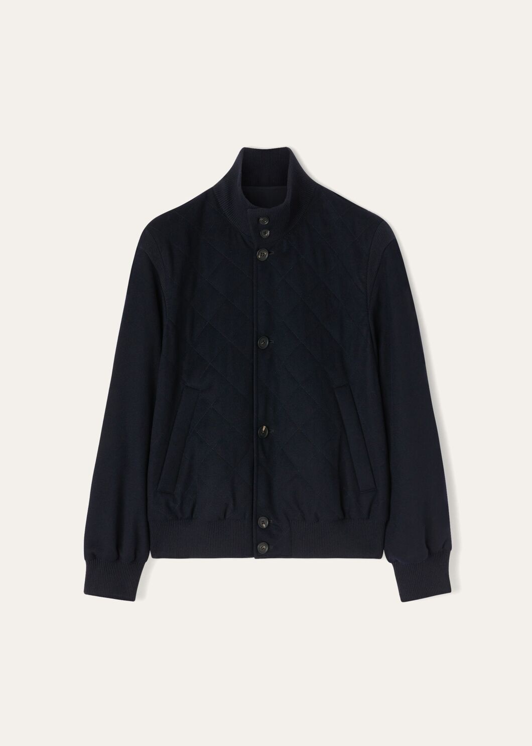 Reversible bomber jacket. One side is in extremely fluffy cashmere fabric that feels similar to velvet, while the other is in Wind Stretch microfibre with a water-repellent, wind-resistant Storm System® treatment. Classic, diamond-shaped quilting accentuates its decidedly bold, sporty allure. Product details Cashmere-knit, two-button stand collar Exposed button closure Slightly slant welt pockets Cashmere-knit trim and details Composition: Cashmere Side: 100% Cashmere Composition: Wind Side: 100% Technical Fabric Model wears an IT XS Model measures: height 6' 1.2"/ 186cm, bust 36.6"/ 93cm, waist 31.9"/ 81cm, hips 35.8"/ 91cm. Made in Italy Product Code: FAM7690