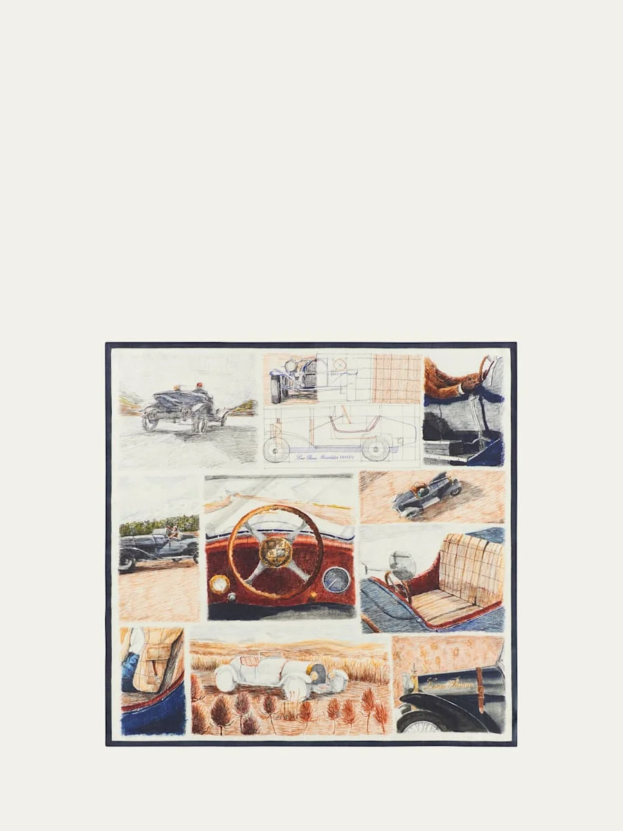 Rooted in the brand's enduring affinity for the world of classic cars, the Roadster foulard from Loro Piana unveils a collage of archiveinspired photographs picturing sophisticated vintage cars in motion. Approx. 35.4"L x 35.4"W Crafted from a refined blend of silk and cashmere for lightweight warmth Contrast handrolled hems Roadster print Cashmere/silk Dry clean Made in Italy
