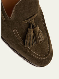 Loro Piana "Serge" loafers in supple leather accented with tonal topstitching Stacked heel Round apron toe 360-degree lacing Tassel ends Leather lining and outsole Slip-on style Made in Italy Online Inquiries: BGS21_NDQEL| Store Inquiries: #5066629
