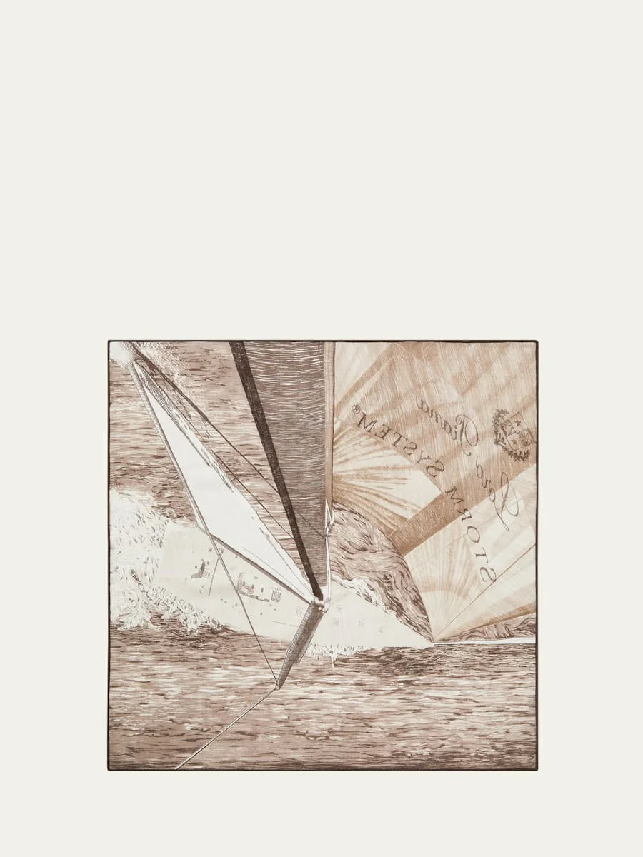 The Storm System foulard by Loro Piana pays homage to the brand's textile innovation and longstanding affinity to the world of sailing. Approx. 35.4"L x 35.4"W The print depicts a sail from a top angle, accented with intricate handpainted lines evoking the rocking motion of the boat Handrolled edges Storm System print with logo Wool Made in Italy