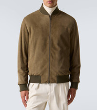 Crafted from supple leather, the Ivy bomber jacket by Loro Piana showcases clean, minimalist lines for a sophisticated aesthetic. Reflecting the finest Italian craftsmanship, this style features a college-inspired collar, ribbed trims, and practical pockets. Product Details - Material: 100% goat leather (suede) - Care instructions: specialist clean - Made in Italy - Designer color name: Leaf Tea - Item color: green - Lining: 64% cotton, 36% polyester - Sleeve lining: 100% cupro - Pocket lining: 85% cotton, 15% cashmere - Filling: 100% polyester - Trim: 100% cashmere - Closure: concealed zipper - Cuff: ribbed - Hem: ribbed - Pockets: side slit pockets, internal pockets - Item number: P01069016 Size & Fit - True to size - Straight fit - Elasticated hem - Non-stretchy fabric - Falls to the hip - Height of model is 188cm-74" and wears a size IT 50