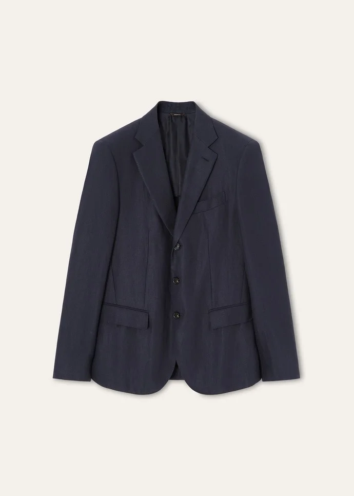 An homage to the timeless style of Sergio Loro Piana, the Torino jacket embodies the essence of sophistication. Crafted from Antigua Linen with a half-lining, it features a refined, fluid look and is resistant to creasing. Its single-breasted silhouette – complete with an edged chest pocket – is finished in line with the canons of suiting and accented with a signature thistle pin. Product details Notch lapels Flap pockets at the front, ticket pocket at the chest; two inner pockets with horn button, small pen pocket Four-buttoned cuffs Front fastening with horn buttons Kummel-colored stitching at the back of the lapel Regular fit Double vents Half-lined Twill weave Composition: 100% Linen Model wears an IT 48 Model measures: height 6′ 2″/ 188cm, bust 32.7″/ 83cm, waist 27.6″/ 70cm, hips 34.6″/ 88cm, shoes 16.9″/ 43cm. Made in Italy Product code: FAP3535