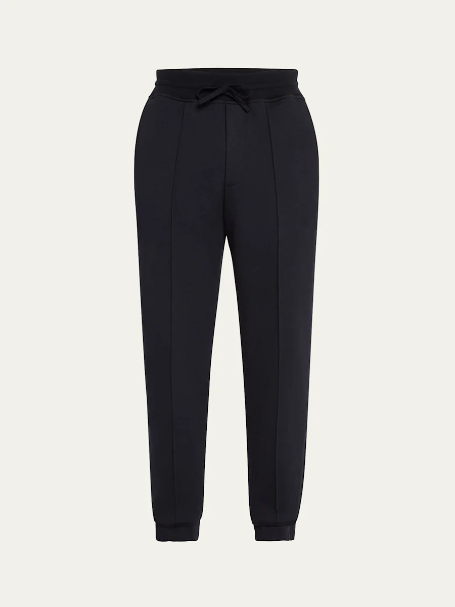 Loro Piana "Whitney" luxury leisure fleece pants Elasticized waistband with drawstring Regular rise Side welt pockets Straight legs Full length Pullon style Ribbed cuffs Cotton/silk/cashmere Made in Italy