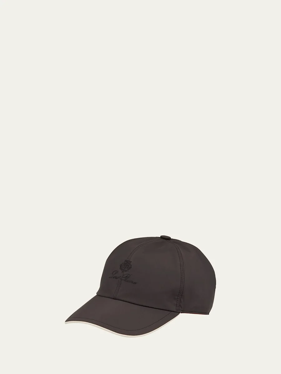 Loro Piana baseball hat. Treated with Storm System for a waterproof, windresistant finish. Embroidered logo at front. Elasticized strap at back. Polyester; lining, cotton/polyester. Made in Italy.