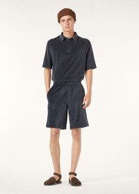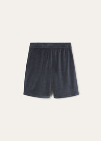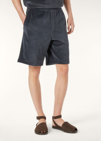 In jersey velour, the Murano shorts offer both a rich, tactile feel. The fabric is a luxurious fusion of silk and cotton and creates a plush, chenille-like surface that feels exquisitely soft and velvety against the skin. This relaxed pair is fitted with an outer waistband and a woven inner drawstring, ensuring a comfortable yet refined finish. Product details Mid-rise waist Straight leg American pockets at the front Elasticated waistband with inner ribbing Drawstring at the waist Plush velour fabric Tubular hem Relaxed fit Lined Composition: 91% Cotton, 9% Silk Model wears an IT M Model measures: height 6′ 2″/ 188cm, bust 32.7″/ 83cm, waist 27.6″/ 70cm, hips 34.6″/ 88cm, shoes 16.9″/ 43cm. Made in Italy Product code: FAP0972