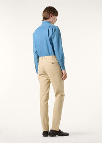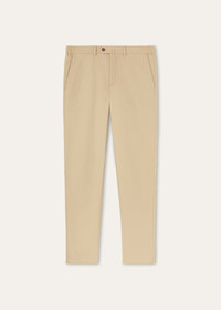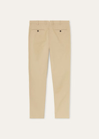 Ultra-soft cotton trouser with a touch of stretch. Flat fronted and garment dyed, for an impeccable finished look. Team this versatile casual staple with a jacket or outerwear for contemporary outfits with effortless polish. Product details Length: 118.5 cm Bottom leg: 19 cm Rise: 22 cm Welt pockets on rear with button fastening Spare buttons supplied Name label inside Composition: 96% cotton 4% elastane Made in Italy Product code: FAO8422