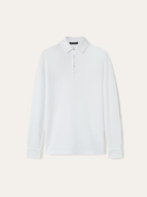 Long-sleeved polo shirt in honeycomb pique cotton. A very versatile casual wardrobe essential, perfect under a jacket or with a casual trouser. Product details Three buttons with placket Cuffs with buttons Composition: 100% cotton Model wears an IT S Model measures: height 6′ 2″/ 187cm, bust 35.8″/ 91cm, waist 29.1″/ 74cm, hips 38.2″/ 97cm. Made in Italy Product code: FAI1311