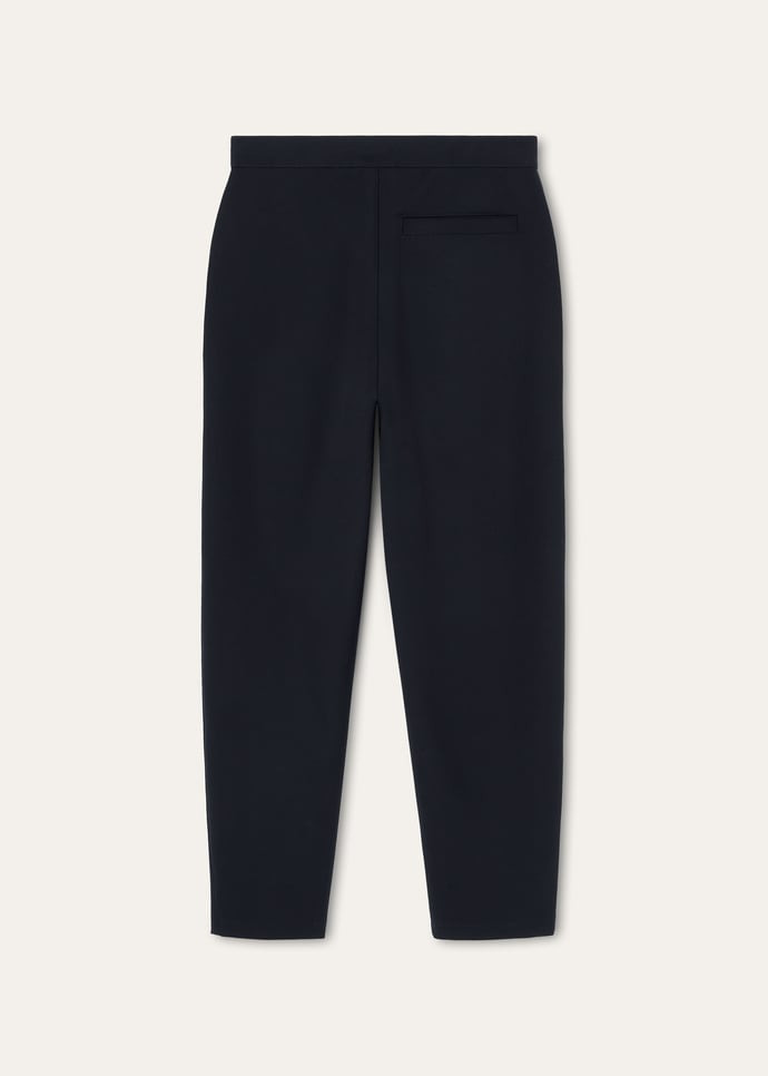 Tailored from stretch-fused wool jersey, the Pray pants preserve a sharp line throughout the day. The carrot-shaped design is cut with a jersey waistband that mirrors formal pant construction, offset by a knitted inner drawstring for an adjustable fit. The pair is piece-dyed for rich coloration. Product details Mid-rise waist Straight leg American side pockets; welt pocket at the back Zip fastening with metal hook and horn button Overstitched hems Unlined Regular fit Composition: 98% Virgin Wool, 2% Elastane Model wears an IT M Model measures: height 6′ 3″/ 190cm, bust 32.3″/ 82cm, waist 25.6″/ 65cm, hips 33.9″/ 86cm, shoes 17.3″/ 44cm. Made in Italy Product code: FAP0598