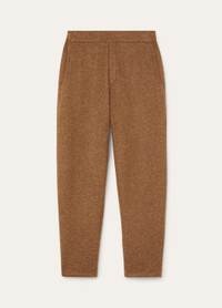 The Rio Bodro pants elegantly bridges the lingering chill of winter with the first whispers of spring, dressing you in comfort as the seasons subtly shift. Crafted from our iconic lightweight yet warm cashmere jersey Novalis, this carrot-shaped garment envelops your legs in a cocoon of luxurious comfort, its tapered silhouette offering a contemporary take on classic loungewear. This pair of pants strikes the perfect balance between relaxation and refinement. Product details Mid-rise waist Straight cut Side pockets with ribbed trim on the front Welt pockets with zip closure on the back Inner drawstring at the waist Partially elasticated waistband Regular fit Unlined Melange fabric Composition: 96% Cashmere, 4% Microfiber Made in Italy Product code: FAP0399