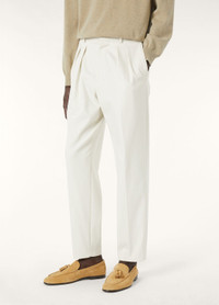 The Ruben pants balance ease with polish. Cut to sit slightly high-waisted, they are traced with double pleats at the front and taper in gently towards the cuffs. Their Atlanta Cotton fabric is fused with ample stretch for a comfortable fit and worked with a special finishing process to achieve a cashmere-like texture and a lived-in feel reminiscent of vintage styles. Product details Mid-rise waist Tapered cut Straight side pockets with small pen pocket on the front; welt pockets with button on the back Zip fastening with metal hook and horn button Inner logo tag to write your name Belt loops Regular fit Unlined Double pleat Composition: 98% Cotton, 2% Elastane Model wears an IT 48 Model measures: height 6′ 3″/ 190cm, bust 32.3″/ 82cm, waist 25.6″/ 65cm, hips 33.9″/ 86cm, shoes 17.3″/ 44cm. Product code: FAP3455