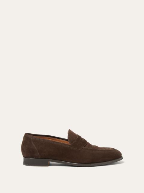Fusing style with heritage, the iconic Sergio loafers are inspired by Sergio Loro Piana’s personal collection. They are crafted using the closed-channel Blake method—named after the sewing machine—whereby the sole, lining, upper, and insole are joined with a single seam, for a flexible and durable finish. The vamp is worked using Adler workmanship, a double-stitch technique which creates an elegant relief effect. Classic and characterful, the moccasin profile is finished with a distinct band, which is reminiscent of 1970s looks that were dear to Sergio. Product details Topstitching Stud detailing Leather sole Calf lining Composition: 100% Calfskin Made in Italy Product code: FAO9641