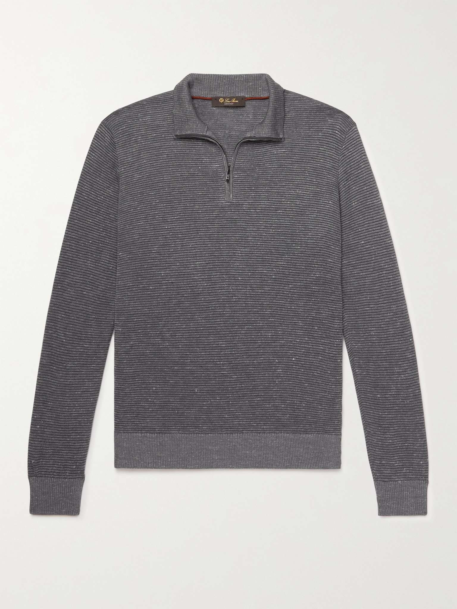 Slim-Fit Ribbed Silk, Cashmere and Linen-Blend Half-Zip Sweater