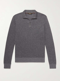 Loro Piana's expertise in fine fabrics and detailed craftsmanship can be seen in even its simpler pieces, like this sweater. Fitted with a half-zip funnel neck for comfortable layering, it's rib-knitted in a lightweight gauge from a silk, cashmere and linen-blend. Size & Fit - Fits true to size. Take your normal size - Take the next size up if you wish to achieve a looser fit - This sweater is designed for a slim fit - Lightweight knit - Model wears an IT 48 - Model measures: chest 38"/ 96cm, height 6'1"/ 185cm Details & Care - Navy and grey silk, cashmere and linen-blend - Funnel neck - Zip fastening - 60% silk, 30% cashmere, 10% linen