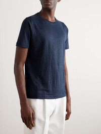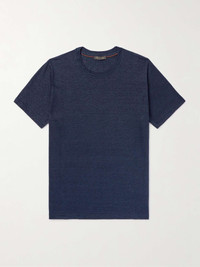Wardrobe essentials don't come more exquisite than Loro Piana's. Ideal to keep you cool in balmy climates, this T-shirt has been made in Italy from soft, airy linen and features a signature herringbone-stitched collar that's reinforced to hold its shape. Size & Fit - Fits true to size. Take your normal size - Designed for a slightly loose fit - Fine knit - Model is shown wearing a M - Model measures: chest 38"/ 96cm, height 6'1"/ 185cm Details & Care - Navy mélange linen - 100% linen - Hand wash