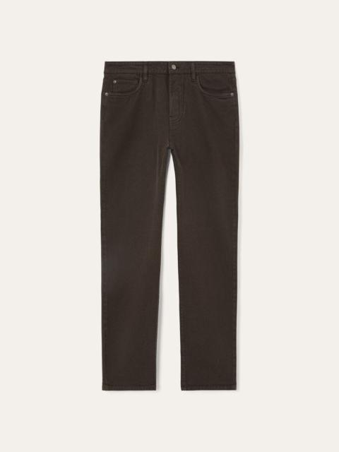 The Quarona denim pants are emblematic of the effortless ease of denim, celebrated for its versatility and enduring charm as the seasons shift. The classic, regular-fit 5-pocket design have a sophisticated, rich finish. Team them with breezy linen shirts or crisp T-shirts. Product details Mid-rise waist Straight cut Classic 5-pocket style Zip closure with button Metal button Leather patch with Loro Piana logo on the back Belt loops Regular fit Unlined Composition: 99% Cotton, 1% Elastane Specific Features: 100% Calfskin Product code: FAP3991