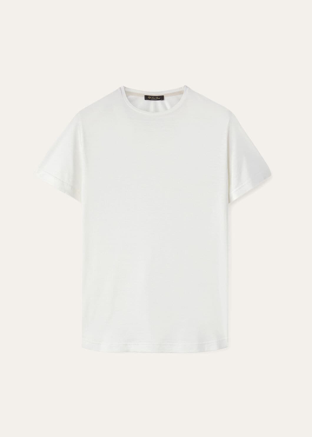 Crafted from cotton-and-silk jersey, this basic short-sleeved T-shirt is defined by an innately sporty summertime allure. Fresh cotton and glossy, lightweight silk are combined to create a soft, opaque texture, evoking the summertime vibes of far-off islands and the collection’s decidedly laidback spirit. Product details Rounded hemline Composition: 60% Silk, 40% Cotton Model wears an IT S Model measures: height 6′ 3″/ 190cm, bust 35.0″/ 89cm, waist 31.5″/ 80cm, hips 35.0″/ 89cm. Made in Italy Product code: FAF6128