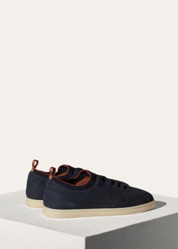 Slip-on sneakers in lightly padded calfskin. Light, supple and ultra-comfortable, finished with trim in knitted Wish® wool. Product details Wish® is an exceptionally fine wool from selected Merino sheep bred in Australia and New ZealandBagged construction: the leather lining is fitted around the last "like a glove"Composition: 100% calfskinTrim. 100% virgin wool Made in Italy Product code: FAL2899