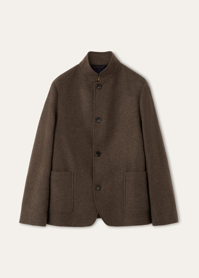 A symphony of nature unfolds with this contemporary interpretation of the Spagna sweater jacket, defined by an upright collar and traditional tailoring. Almost entirely unlined, it is beautifully crafted from double cashmere Jersey Novalis, our iconic lightweight yet warm, naturally stretchy fabric. Embodying Loro Piana's commitment to unparalleled textile quality, it gently embraces the wearer. With its casually refined lines, it transcends the seasons with timeless elegance. Product details Upright banded collarHorn buttons and suede top buttonholeLarge patch pockets with calfskin under-flapsRounded at the hem on the frontStory telling label insideComposition: 96% Cashmere, 4% Technical Fabric Made in Italy Product code: FAO1080