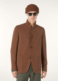 First introduced in 1998, with cues taken from the Spanish officer’s uniform, the iconic Spagna jacket combines a formal silhouette with a refined construction for ultimate comfort and ease of movement. It is defined by a standing collar and has a clean, straight line. Ideal for the warmer months, its twill-woven fabric combines the texture of linen with the smooth drape of silk for exquisite softness and a refined matte look. Product details Standing collar with leather piping Patch pockets at the front, two inner pockets, one with a zip fastening and one with a button Four-buttoned cuffs Front fastening with Sergio horn buttons Inner Loro Piana tag to write your name Half-lined Regular fit Single vent Composition: 59% Linen, 41% Silk Model wears an IT 48 Model measures: height 6′ 2″/ 188cm, bust 32.7″/ 83cm, waist 27.6″/ 70cm, hips 34.6″/ 88cm, shoes 16.9″/ 43cm. Product code: FAP2296