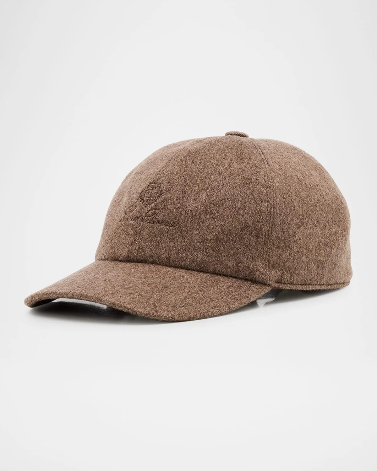 Loro Piana baseball hat in cashmere. Treated with Storm System%26#174; for a waterproof, windresistant finish. Embroidered logo at front. Made in Italy.