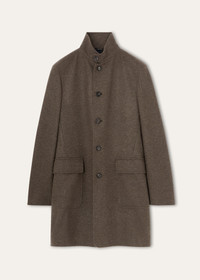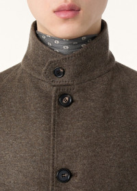 Casual coat crafted from our iconic double cashmere Jersey Novalis. Light yet warm, with a natural stretchiness, this delightfully soft fabric and stylish straight cut are designed to gently envelop the wearer. Ideal for leisure time in the city. Product details Suede trim Upright collar with button Composition: 96% cashmere 4% polyamide Trim: 100% suede goatskin Model wears an IT M Model measures: height 6′ 1″/ 186cm, bust 35.0″/ 89cm, waist 28.3″/ 72cm, hips 35.8″/ 91cm, shoes 43.5. Made in Italy Product code: FAF4702
