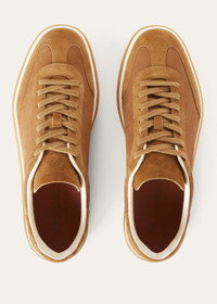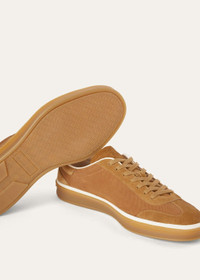An ultra-low silhouette teams with polished style in a tennis shoe designed for year-round versatility and crafted from premium materials. The distinctive double-sole aesthetic showcases a caramel-colored cupsole edged in off-white rubber for an attractive color combination. Wear them with tailored separates or denim for a sense of refined casualness. Product details Kummel-colored insert on the heelTongue with embossed LP logo in soft calfskinCotton lacesComposition: Upper: 100% SuedeLining: 100% CalfskinSole: 100% Rubber Made in Italy Product code: FAO5446