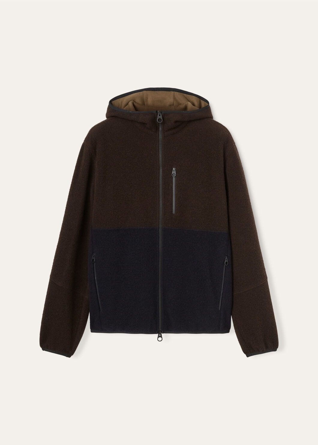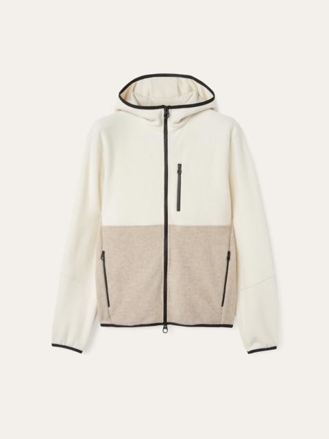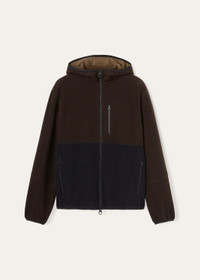 The serenity of a bamboo forest is woven into the very fabric of this exquisite sweatshirt, offering not just beautiful attire but a profound sense of comfort and tranquility. An exclusive, highly refined take on fleece, it combines the exceptionally light warmth of cashmere with the classic velvety softness of fleece to create a hugging fabric that is a real pleasure to wear. Finished with functional pockets, this two-tone piece is as comfortable as it is stylish. Product details Thermoplastic zip fastening reaching up to the hood Jersey-lined non-detachable hood Pockets with water-repellent zip fastenings in black color Wish® wool lining in a tone matching the upper part of the garment Trim in a technical fabric with Loro Piana logo Elasticated cuffs and hem Composition: 100% Cashmere Made in Italy Product code: FAN8425