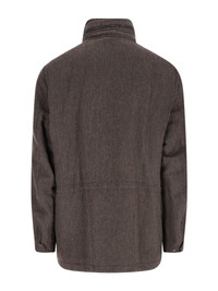 LORO PIANA 'TRAVELLER' DARK JACKET IN LINEN AND CASHMERE BLEND WITH HIGH NECK, ZIP CLOSURE, BUTTONS ON THE NECK, FOUR FRONT FLAP POCKETS, STRAIGHT HEM. PRODUCT INFO PRODUCT CODE FAP3889F6N6 COMPOSITION: 57% LINEN, 38% WOOL, 5% CASHMERE SIZE AND FIT: REGULAR FIT MADE IN: ITALY