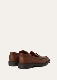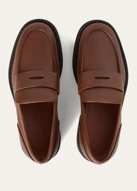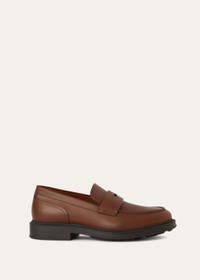 Inspired by classic English footwear, these new Loro Piana loafers combine a sophisticated, comfortable design and masculine allure with the modern look of highly accentuated, lightweight lug soles. They are crafted from calfskin with a unique finish, making them extremely soft while preserving the natural qualities of the leather. Their slightly lived-in look adds a touch of refined elegance to casual outfits. Product details Double-stitched mustache and handsewn trim The soles feature a new version of the LP logo Composition: 100% Calfskin Specific Features: Lining: 100% Calfskin; Soles: 100% Rubber Made in Italy Product code: FAN5630