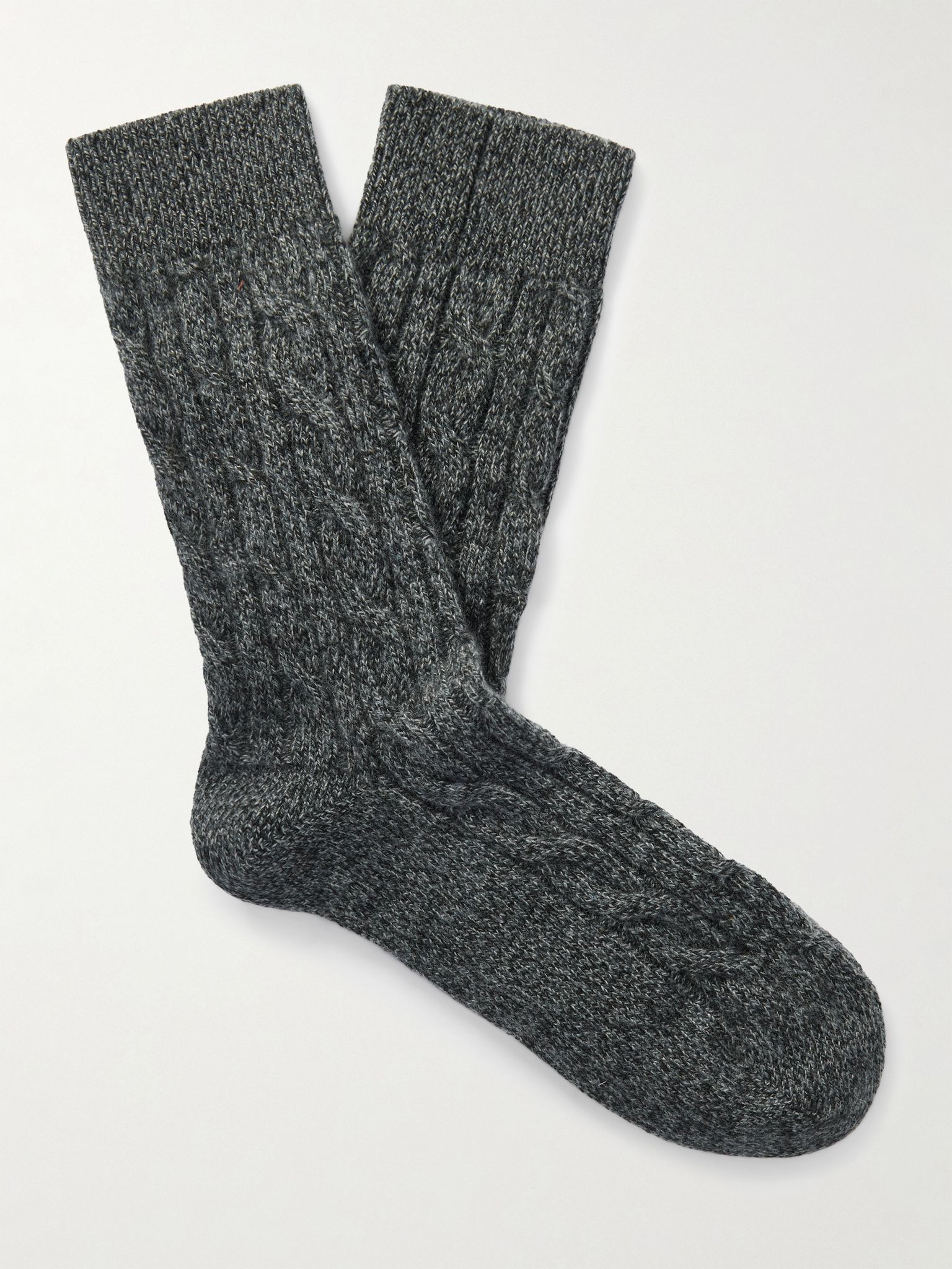 Loro Piana's 'Treccia' socks are knitted from the softest baby cashmere, a rare, natural fibre prized for its warmth and gentle handle. They're designed with a cable-knit pattern and ribbed at the ankles to keep them in place. Details & Care - Grey baby cashmere - 100% cashmere - Dry clean