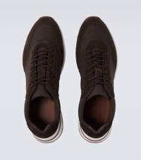 These Week End Walk sneakers from Loro Piana are defined by lightweight mesh uppers and smooth suede trims. The pair showcase a grippy finish and cushioned soles to provide all-day comfort. Product Details - Upper: fabric, leather (suede) - Lining: fabric - Sole: fabric insole, rubber sole - Color: brown - Toe shape: almond toe - Made in Italy - Includes: shoe box, dust bag - Designer color name: Cedar Bronze - Item color: brown - Closure: lace-up - Item number: P01138776 Size & Fit - True to size - European sizes
