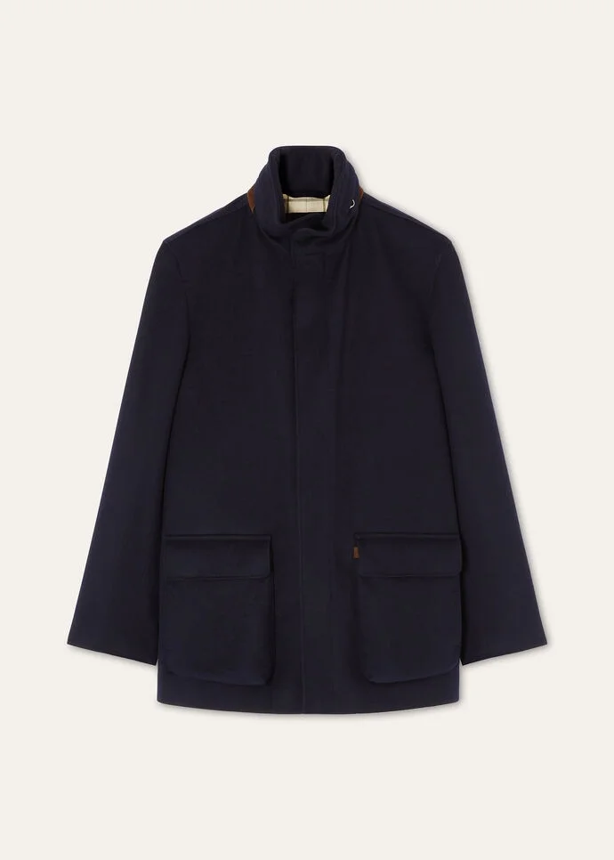 Versatile and comfortable, the Winter Voyager jacket is a refined Caban design suited for the city and travel alike. Its fabric combines the incredibly sumptuous touch of Baby Cashmere drap with the high-performing properties of the Storm System® treatment, balancing style and function. In the final finishing stages, its nap is raised, delicately brushed, and then fixed to achieve a soft luster and amplify the fabric’s innate light-reflecting nature. Product details Removable stowaway hood Flap pockets Adjustable cuffs with snap buttons Front fastening with zip and snap buttons Half-belt with horn buttons and straps Lined in Cotton Belt Suede details Composition: 100% Baby Cashmere Made in Italy Product code: FAQ0480
