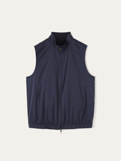 This sleeveless version of the iconic Loro Piana reversible bomber is designed for seamless layering. Featuring an outer in wind stretch Storm System® microfiber and Wish® wool inner, it is exceptionally lightweight but delightfully warm with a classic close fit that makes it perfect for wearing on its own or under an outer layer without creating a bulky silhouette. Split pockets add further practicality, while the upright collar provides additional protection from the wind. Product details Upright collar with zip Sleeveless Full frontal zip Slit pockets on both sides Composition: Side 1: 100% Microfiber Side 2: 100% Wool Model wears an IT 48 Model measures: height 6′ 2″/ 188cm, bust 35.8″/ 91cm, waist 28.0″/ 71cm, hips 35.8″/ 91cm, shoes 16.9″/ 43cm. Made in Italy Product code: FAP9759