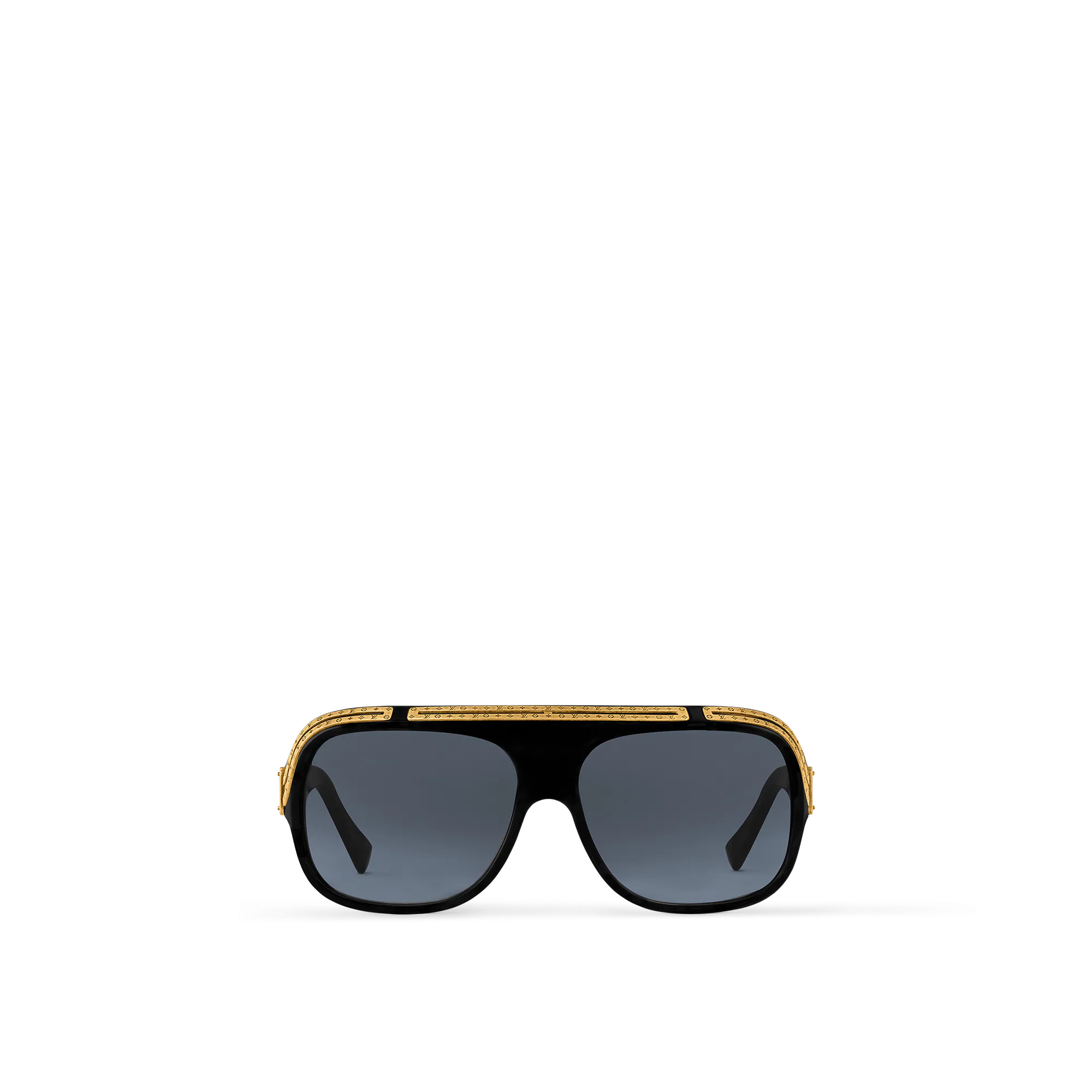Celebrating the 20th anniversary of the iconic 1.0 Millionaires Sunglasses, Pharrell Williams revisits his original design with a fresh and sophisticated new model available in two colors. The vintage pilot shape, crafted from injected acetate, is adorned with Monogram-engraved double bars with an aged gold finish running from the bridge to the temples, while beautifully crafted metal and enamel hinges adorned with LV signatures recall the House’s heritage trunks. - Black - Acetate - Made in Italy - Transmittance:14% - UV Protection:100% - Filter Category:3