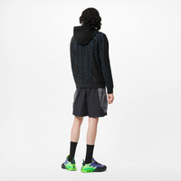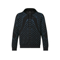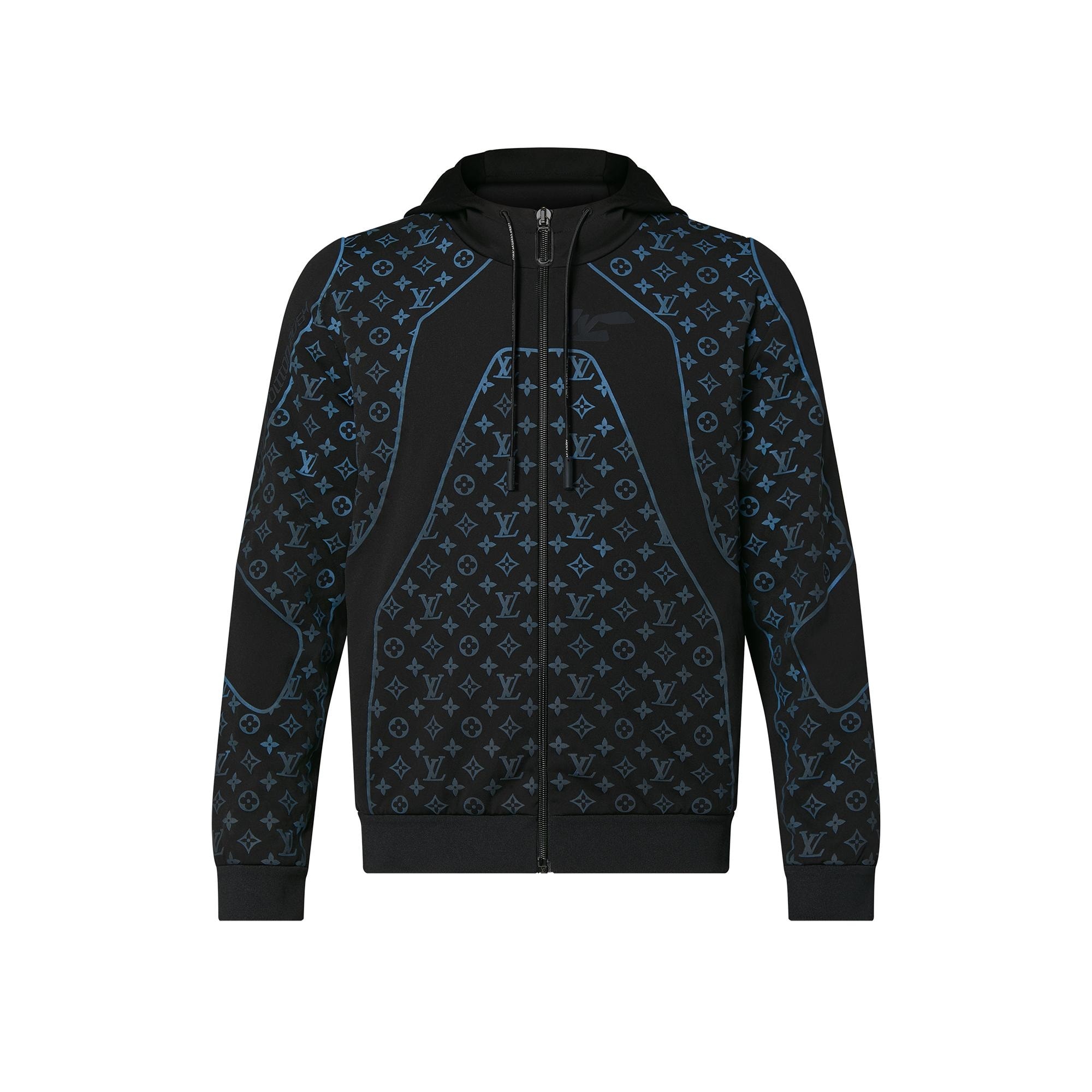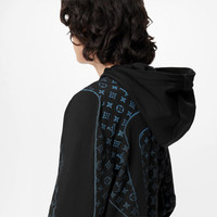 This zip-through blouson features a trompe l'oeil patchwork effect, with its plain and printed Monogram panels. The technical jersey fabric reacts to heat, with the Monogram motif turning blue above 28° C. Details include a screen-printed LV signature, knitted cuffs, and LV 2054 drawstrings with silicon end pieces. Detailed Features - 86% Polyamide, 14% Elastane - Black - Model wears a FR M0 size - Model measurements : chest 34’’ / 86 cm, height 6'2’’ / 188 cm - Made in Italy