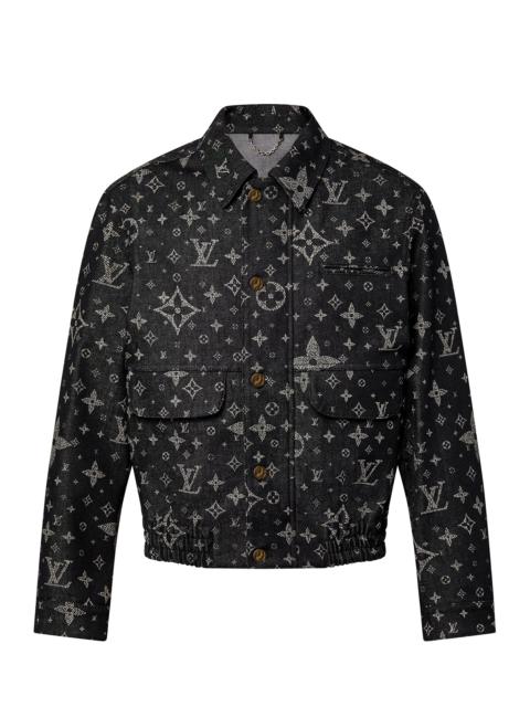 This cozy bouclette blouson features this collection’s Monogram Mappamundi signature in warm wintery tones. Inspired by cross-cultural friendships, the graphic jacquard motif depicts a Monogram-embellished world map, which wraps around the body and arms. With its elegant simplified lines and resemblance to a sophisticated fleece, this blouson brings a trendy twist to a casual silhouette. - Relaxed Fit - Monogram Mappamundi signature printed allover - Elasticated hem and cuffs - Ribbed inside collar - Two side pockets - Zipped closure - Dark Navy - 82% Laine, 18% Polyamide - Made in Italy