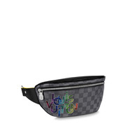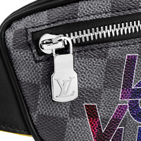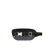 The new compact Bumbag PM is fashioned from Damier Graphite canvas with Louis Vuitton printed in bold, interlinked letters on the front pocket. Designed to be worn around the waist or over the shoulder, this practical small bag has a zipped back pocket for easy to access to essentials in addition to its main compartment. Detailed Features - Damier Graphite coated canvas - Textile lining - Cowhide-leather trim - Silver-color hardware - Zip closure system - Adjustable belt - Buckle fastener - Outside zipped back flat pocket - The reference is either made in France, Spain, Italy or in the US. Length: 10.24 inches Height: 5.12 inches Width: 2.76 inches