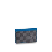 The Card Holder in Damier Graphite canvas is distinguished by its electric-blue trim and lining, which contrast boldly with the black and gray of one of Louis Vuitton's signature materials. This neatly proportioned accessory holds payment essentials in a slim, pocket-friendly format. Detailed Features - Damier Graphite coated canvas - Blue cowhide-leather trim and lining - 2 card slots - Bill compartment - The reference is either made in France, Spain, Italy or in the US. Length: 4.33 inches Height: 2.76 inches Width: 0.2 inches