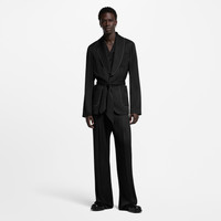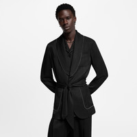 Offering effortless sophistication for evenings, this single-breasted pajama jacket from the Spring-Summer 2025 show is tailored from black silk twill. The fluid silhouette is adorned with a shawl lapel edged with silver beads, while a belt defines the waist. This chic piece can be styled with a matching shirt and pants. - Regular fit - Black - 100% Silk - Striped monochrome jacquard twill - Silver beaded trim on collar - Half lined in silk - Buttoned fastening - Sash belt - 2 front patch pockets - 1 patch pocket chest - Signature patch on back - Made in Italy