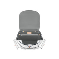 Inspired by the traditional hiking backpack, the Christopher MM backpack is made from Virgil Abloh’s new Monogram Mirror canvas. Introduced as part of the LV Mirror Mirror capsule at the Fall-Winter 2021-22 Show, the reflective canvas is paired with natural leather trim. The main compartment closes with a drawstring and leather flap with press-studs. Detailed Features - Monogram Mirror coated canvas - Natural Cowhide leather trim - Textile lining - Silver-color hardware - Adjustable shoulder straps - Flap opening - Press stud and drawstring closure - 2 side pockets - Inside iPad pocket - Inside zipped pocket - 2 inside flat pockets - Handle:Single - This reference is either Made in France, Spain, Italy or in the US. Length: 15 inches Height: 17.3 inches Width: 8.3 inches