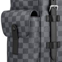 A visually powerful everyday bag with the vigor of the outdoors, the versatile Christopher PM comes with a roomy interior. An attractive style marked by good taste. Detailed Features - Damier Graphite canvas body - Adjustable shoulder straps - Cowhide leather trim - Silver color metallic pieces - Flap opening - Press stud and drawstring closure - Textile lining - 2 side pockets - Internal iPad pocket - Internal zipped pocket - 2 internal flat pockets - Handle:Single - The reference is either made in France, Spain, Italy or in the US. Length: 15 inches Height: 17.3 inches Width: 8.3 inches