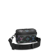 The Comet Messenger PM is a compact messenger bag made from calfskin with a multiple-exposure version of the Monogram print in vivid purple and neon green. The gradation of hues across the leather almost makes it look as if the bag was lit by a spotlight. Double zip closure means belongings stay secure but easily accessible. Detailed Features - Black Borealis - Calf leather - Cowhide-leather trim - Textile lining - Black-color hardware - Double zip closure - Front zipped pocket - D-ring on strap - Strap:Removable, adjustable - Strap drop: 15.9 inches - Strap drop max: 23.6 inches - This reference is either Made in France, Spain, Italy or in the US. Length: 8.5 inches Height: 5.5 inches Width: 3 inches