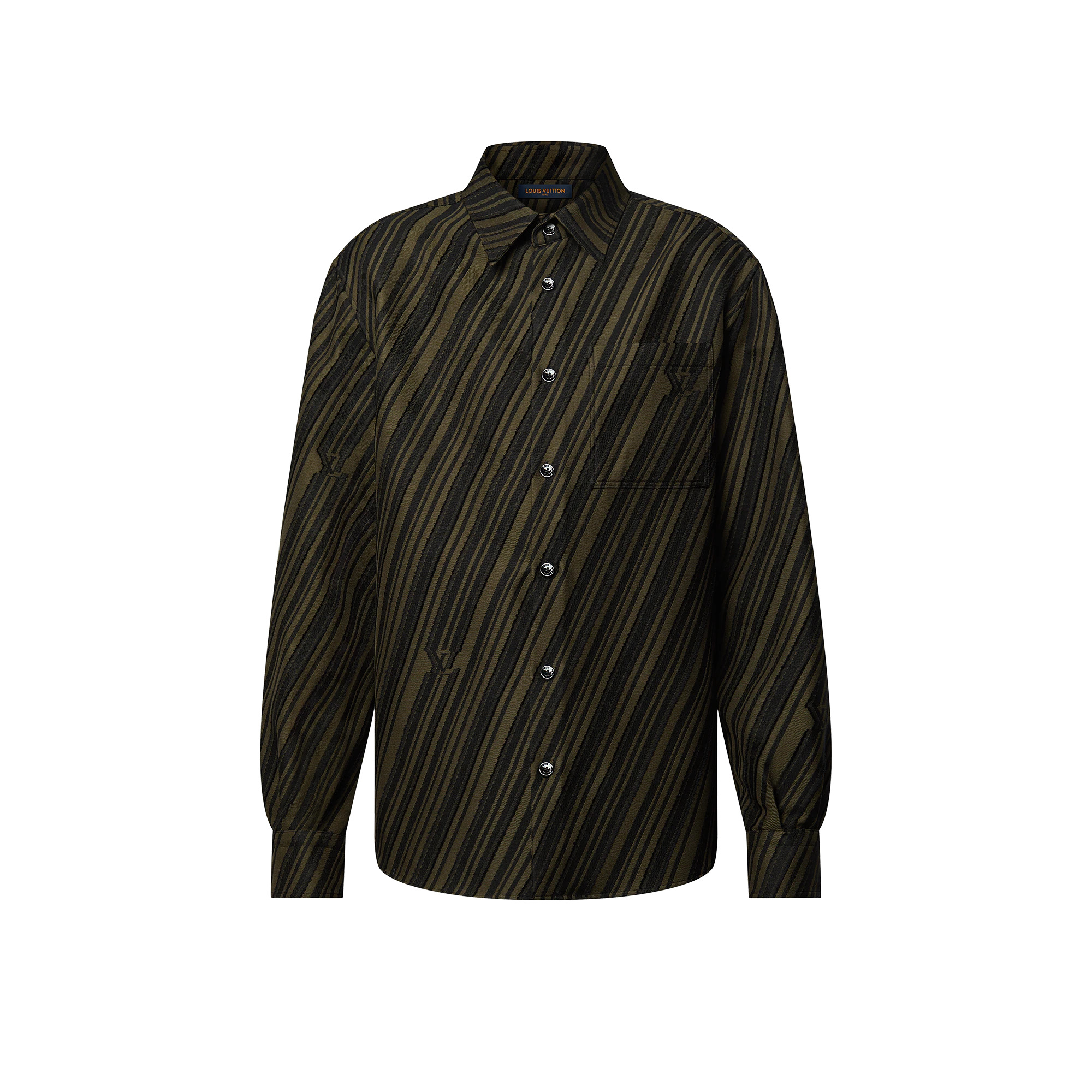 This cotton and wool blend shirt in autumnal tones features this collection’s LV Diagonal motif in a tactile jacquard fil coupe. This versatile piece can also be worn as an overshirt and has matching shorts for a graphic ensemble. - Regular Fit - LV Diagonal fil coupe jacquard. - Pointy collar - Patch pocket on left chest - Button front closure - Bronze - 70% Cotton, 30% Wool - Made in Italy