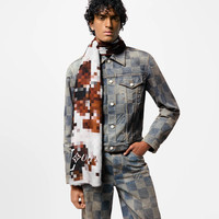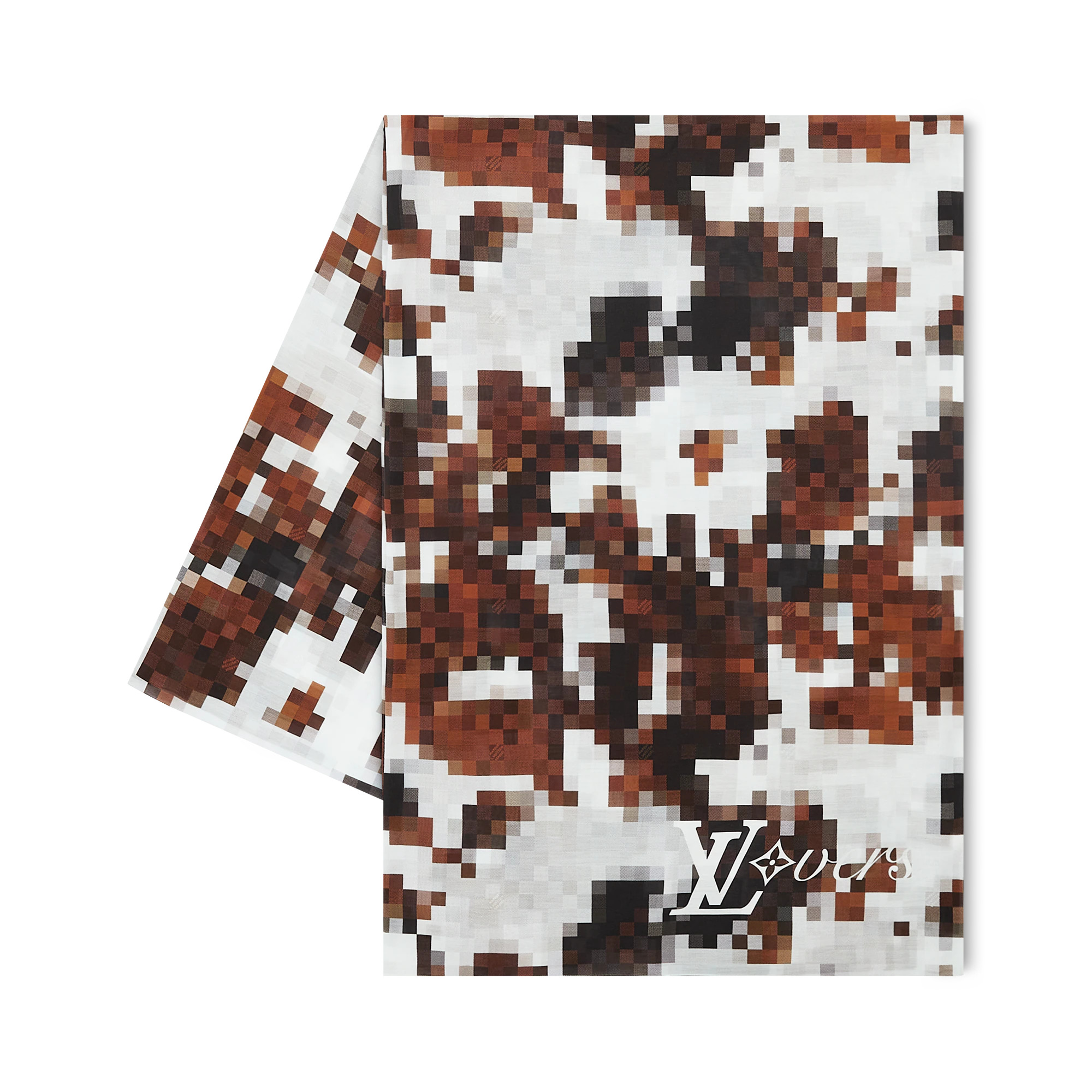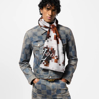 Featuring a standout motif from the Fall-Winter 2024 Show, this Cowmooflage Stole will energize any ensemble. Crafted in a cotton-silk blend, it features an audacious twist on the heritage Damier, playfully reinterpreted in pixelated cowhide tones. Marque L.Vuitton Deposee signatures are discreetly integrated into the motif, while a contrasting white LV Lovers signature adorns one end. Length: 78.7 inches Height: 53.1 inches - Brown - 70% cotton, 30% silk - Made in Italy