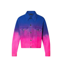 This eye-catching jacket plays the season's featured color gradient motif on a classic denim jacket shape. The pure cotton fabric is bleached and sprayed to create the effect, and embellished with distorted gun-metal buttons. The piece is signed on the rear hem with a Monogram jacqueron in nubuck leather. Detailed Features - 100% Cotton - Grege - Model wears a FR 50 size - Model measurements : chest 34’’ / 87 cm, height 6' 1½’’ / 187 cm - Made in Italy